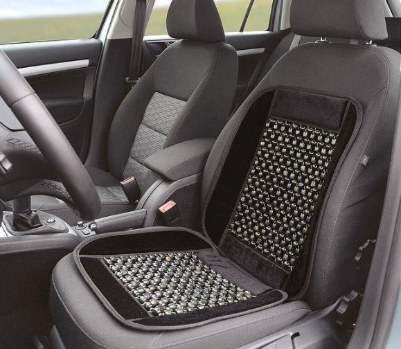 Univerzalna navlaka za sjedalo sa drvenim kuglicama. Tekstilna ivica. Crna boja.