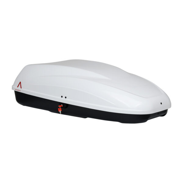 Krovni kofer Dimenzije: dužina 1325 mm, širina 725 mm, visina 370 mm. Unutrašnja dužina 1235 mm, unutrašnja širina 665 mm, unutrašnja visina 360 mm. Prava testirana zapremina 240 l. Boja bijela. Neto težina 10 kg, bruto težina 13 kg. Maksimalno opterećenje 50 kg. Materijal P.S. UV zaštićen. Otvaranje sa strane. Prednja opruga – K3.015 / straga – K3.014.